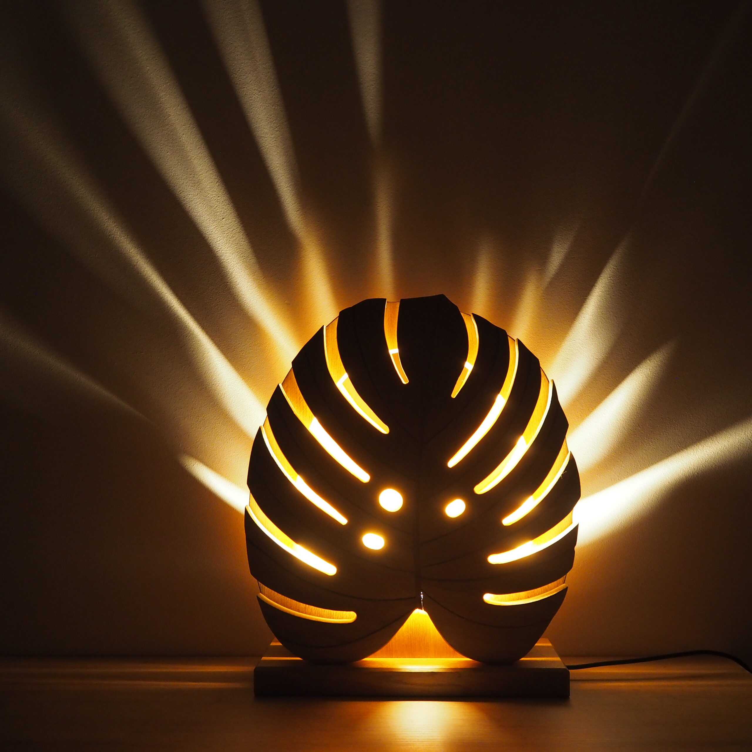 Feuille de lumière : « Monstera II »michel2024-03-12T09:23:09+01:00 < Voir toutes nos créationsFeuille de Monstera en Chêne et Noyer massifPièce en chêne et noyer massifs ciré à la cire d’abeilles DimensionsHauteur 52 cm. Largeur 44 cm Profondeur 15 cm Prix : 1400 €