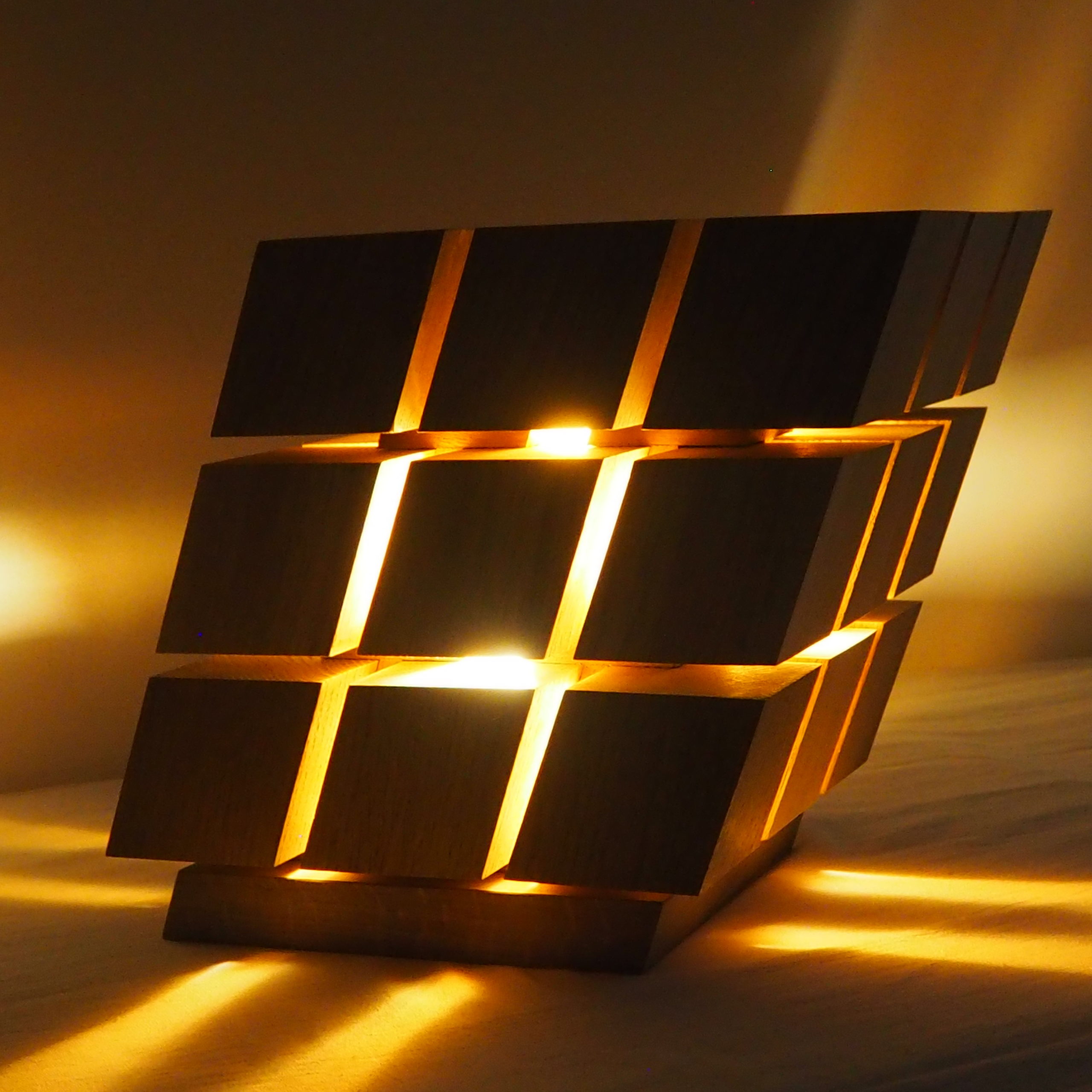Phosphocube – Mistralmichel2025-07-23T18:35:53+02:00 < Voir toutes nos créations« Phosphocube Mistral » incliné à 20° en Chêne massifCube lumineux en Chêne massif poli DimensionsCube de 26 cm de côté Prix : 800 € Vendue